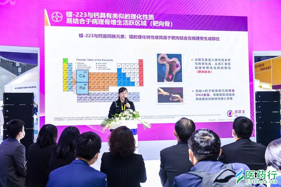 以全新的治疗方式为前列腺癌患者带来三重获益,为“健康中国”持续贡献力量, 今日,拜耳公司旗下重磅产品——多菲戈®(氯化镭[223Ra]注射液)在第三届中国国际进口博览会一登场,便成为医疗器械及医药保健展区备受关注的焦点之一。 该产品用于治疗伴症状性骨