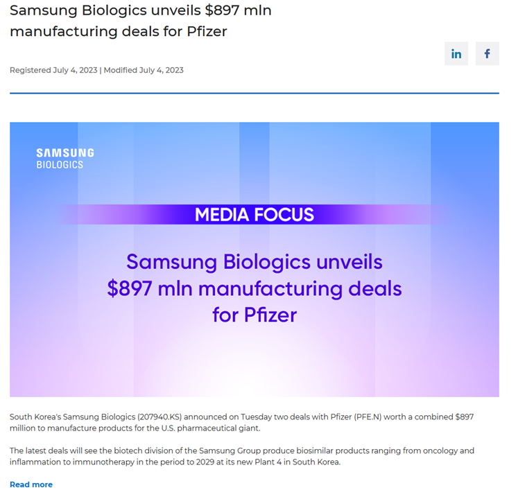 跨国药企加速甩开中国CDMO?三星生物又收一份大礼