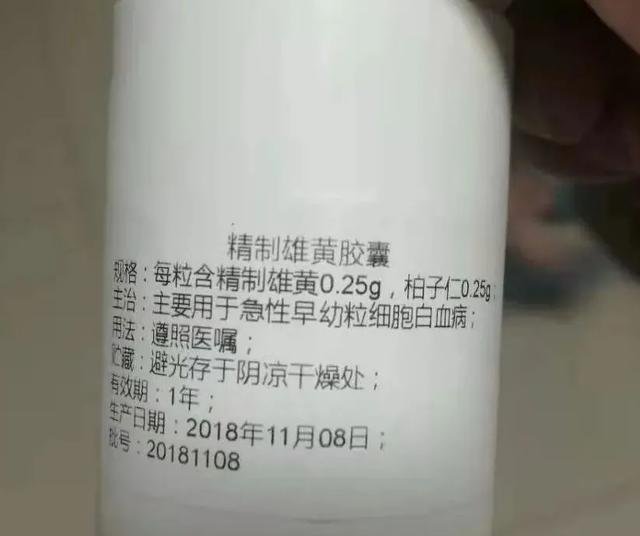 不用药,99%的患者都会死 每天7粒,口服半月停1月,共服用635粒; 每天9粒,口服半月停一个半月,共服用1755粒; 每天10粒,连续服用26天,共服用280粒 两年多来,白血病患儿周玥按照这样的剂量,吃下27瓶“精制雄黄胶囊”,直至因白血病和雄黄导致的砷中毒离