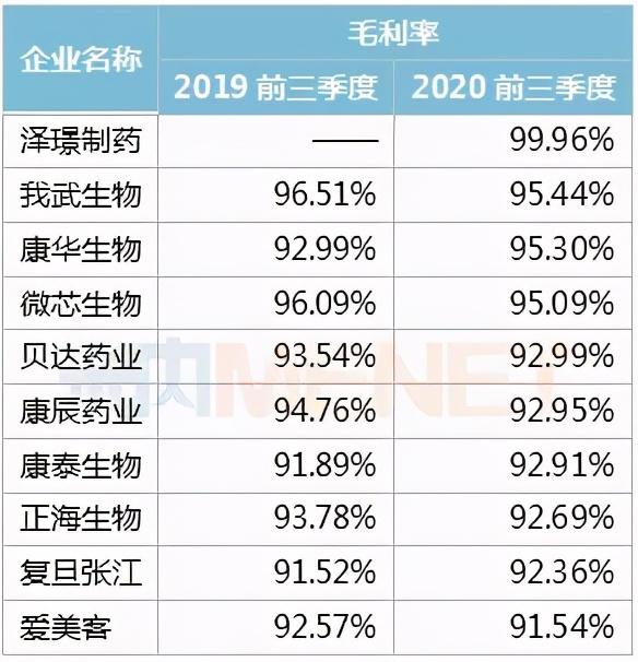 ▍来源/米内网 ▍作者/白羽 精彩内容 日前,A股企业三季报业绩已全部披露完毕。据统计,344家医药企业中,迈瑞医疗、恒瑞医药、云南白药等4家净利润超40亿元;泽璟制药、贝达药业、甘李药业、奥赛康、康弘药业、南新制药等16家毛利率超90%;营收方面,上海医