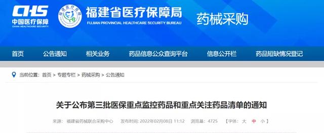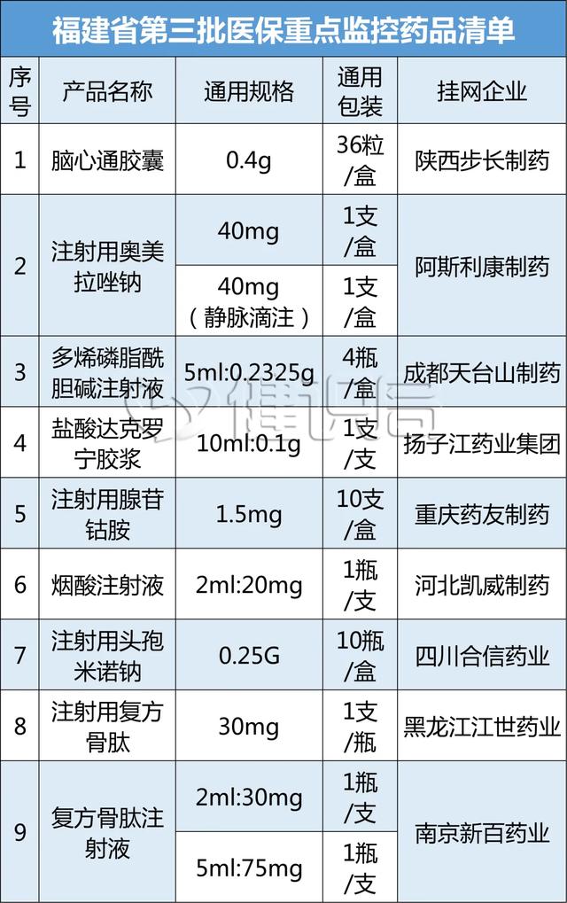 监控了个寂寞 2月8日,福建省医保局公布了《第三批医保重点监控药品清单》,涉及步长制药的脑心通胶囊、阿斯利康的注射用奥美拉唑钠等9种产品。 图源:福建省医保局官网 《清单》强调,曾被列入前两批清单中的产品,除本次继续“上榜”的之外,其余均不再执行