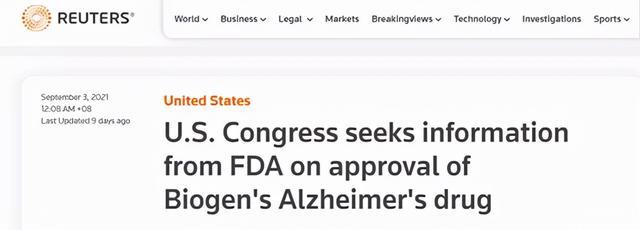 罗氏、辉瑞折戟,还有企业前仆后继 一款新药,引发了全美针对FDA的一轮争议。 9月初,FDA收到了一封来自美国国会的长信,要求对一款阿尔茨海默症(AD)药物的研发数据做出详细说明。 美国国会总共列出了35个问题,细致到了要求FDA提供参与历次内部讨论的具体