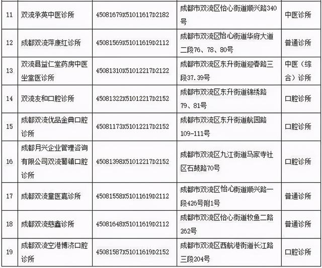 附:成都市双流区19家被依法予以注销的医疗机构名单