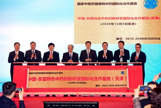 天津药物研究院2018年与广西中医药大学等联合组建“中国-东盟传统药物研究国际合作联合实验室”后,2020年申报了国家中医药管理局“中国-东盟区域特色创新研发国际化合作基地”项目并顺利获得批准,标志着天津药物研究院中药国际化工作迈上新的台阶。在开幕式上,在国内外专家的共同见证下,“中国-东盟区域特色创新研发国际化合作基地”正式授牌成立。