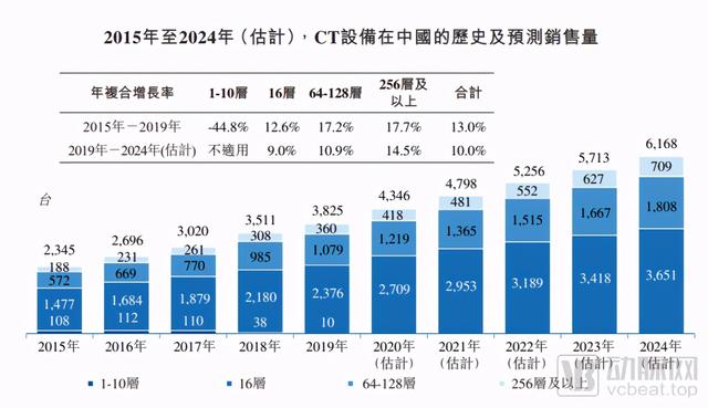 CT设备在中国的历史及预测销售量(图片来源于东软医疗招股书)