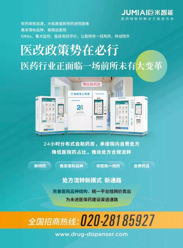 随着医药改革政策的层层加码,处方外流是必然趋势,售药机放开处方药销售成为新的风口,医药公司都在纷纷布局售药机销售处方药这一新的渠道。巨米智能作为24小时智慧药房创新售药服务模式领导品牌,通过药品零售终端自助设备和智慧医药SaaS软件平台,引领售药模式创新,深化医药卫生体制改革,助力“互联网+药品流通”服务稳步向前发展。