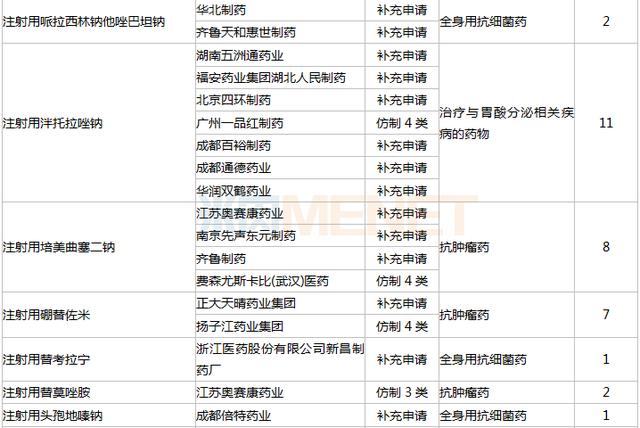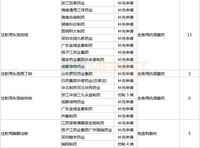 从治疗领域(亚类)来看,上半年过评的114个注射剂品种共涉及34个亚类。其中,全身用抗细菌药最多,有22个;其次是抗肿瘤药有20个。