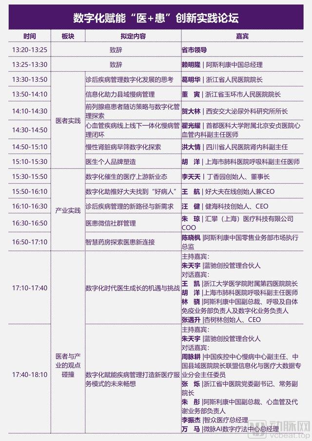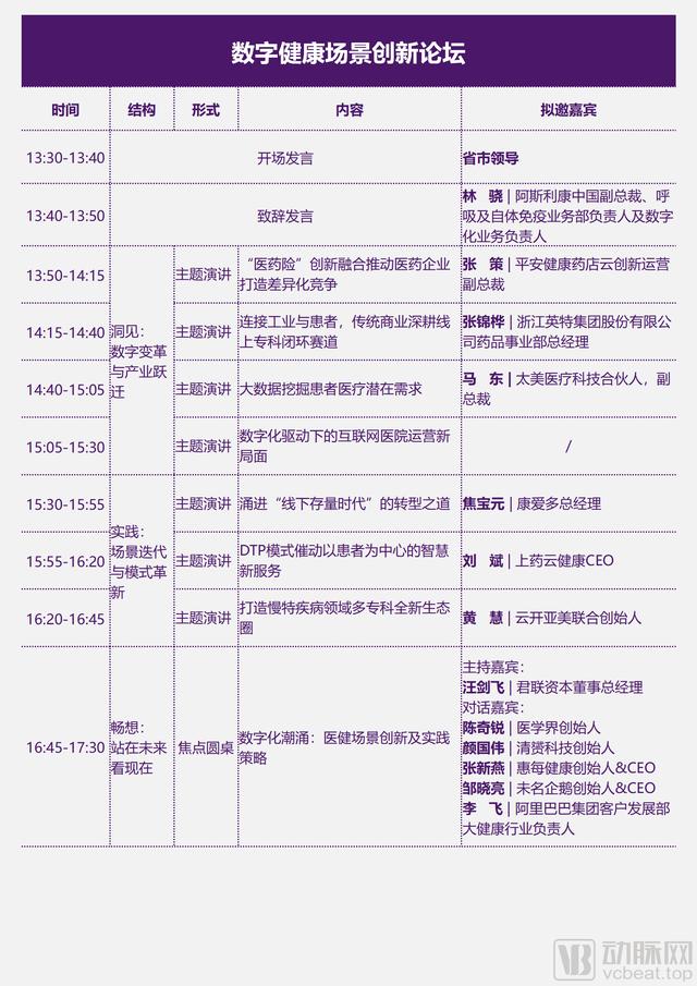 作为集中呈现行业参与者思考内容的阵地,主论坛的众多行业大咖到时必将会展开一场数字化对医药、器械、智慧健康、生物技术等多领域的“头脑风暴”。