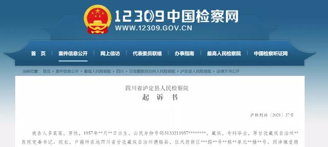从起诉书披露的信息可以看出,被起诉的正是原甘孜州人民医院的党委书记、院长多吉。8月2日,四川省纪委监委发布消息,开除多吉的党籍,将其涉嫌犯罪问题移送检察起诉。