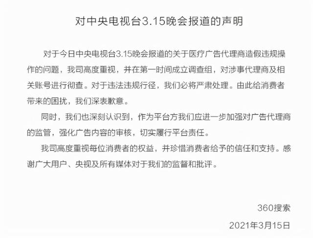 “315”晚会上,UC浏览器和360搜索被爆存在大量虚假医疗广告,成为百度之后被声讨的对象。