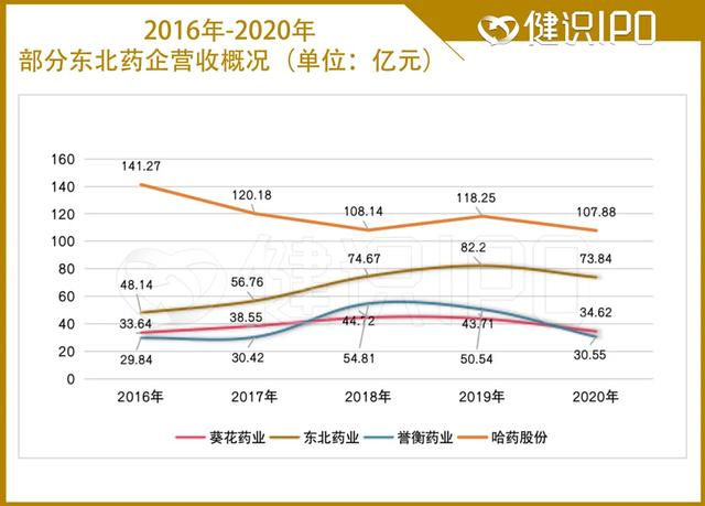 从2020年医药上市公司年报来看,大多数东北药企呈现出营收下滑、亏损扩大的趋势。其中,东北制药营收同比减少10.17%;葵花药业下滑20.8%,誉衡药业更是下降40%;哈药则出现了上市多年来的首次亏损,亏损额达10亿元。