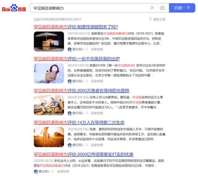 网络搜索“罕见病目录影响力”