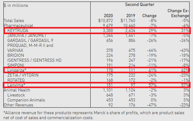 默沙东近日发布了2020年第二季度财报:全球销售额109亿美元,同比下降8%,在排除外汇影响的情况下,全球销售额下降5%。制药业务收入97亿美元,同比减少7%;排除外汇的不利影响,销售额下降6%。