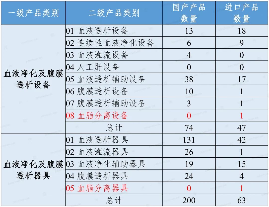 在设备方面,覆膜透析设备基本为国产产品,进口产品主要集中在血液透析设备、以及连续性血液净化设备类别。