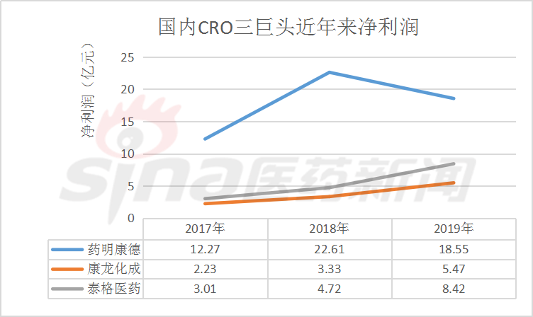 盈利能力方面,药明康德由于体量庞大,在净利润方面远远高出康龙化成和泰格医药,2019年药明康德的净利润虽然下降到了18.55亿元,但分别是泰格医药和康龙化成的1.22倍及2.49倍。不过其收入增势并不如后两家稳定。