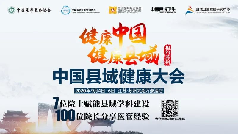 最权威的机遇方向把脉、最高规格的医管政策解读、最强阵容的学科资源赋能、最接地气的医管经验分享、最广覆盖的医管人群定位就在2020中国县域健康大会。