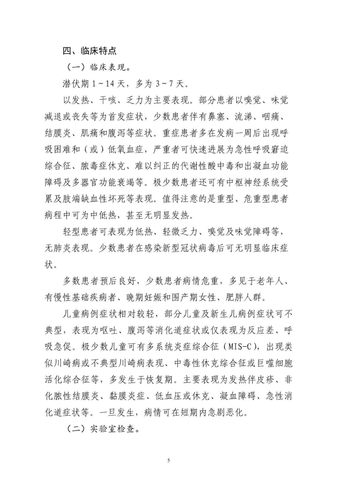 在临床表现上,增加“极少数儿童可有多系统炎症综合征(MIS-C)”,介绍了MIS-C的临床表现。实验室检查上增加“新型冠状病毒特异性IgM抗体、IgG抗体在发病1周内阳性率较低”和可能导致假阳性的情形,以及何种情况下可通过抗体检测进行诊断等内容。