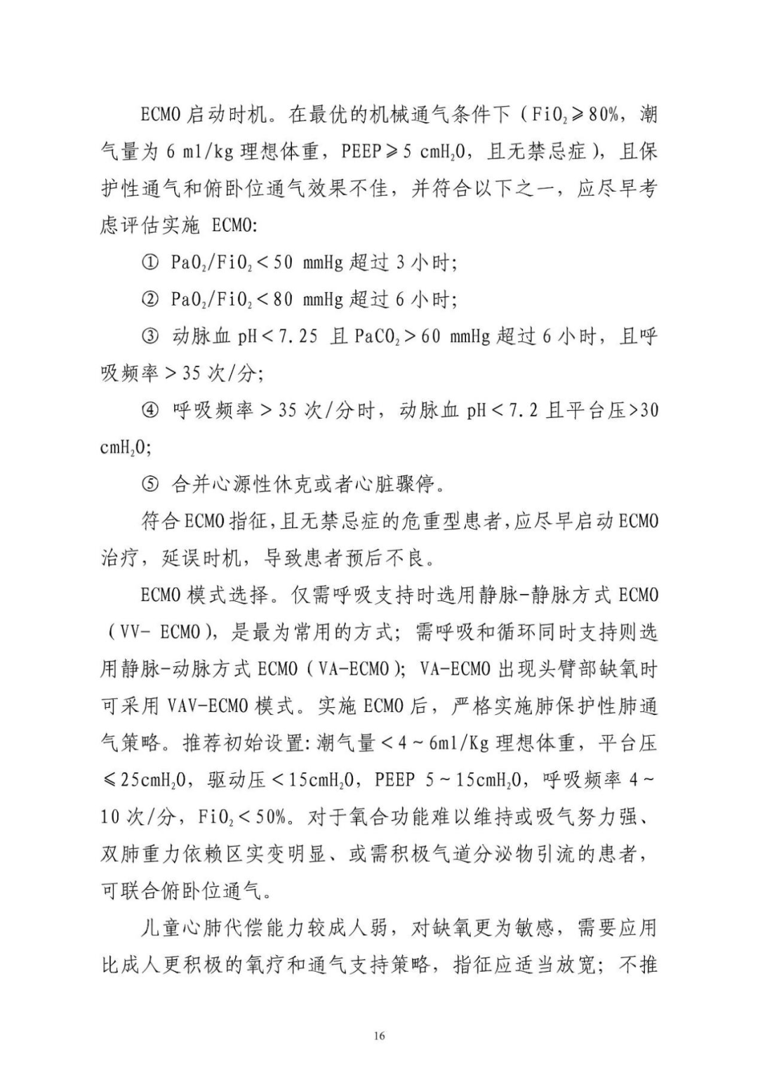 2.增加“气道管理”相关内容,细化“体外膜肺氧合(ECMO)”的启动时机、ECMO指征和ECMO模式选择、推荐初始设置等。