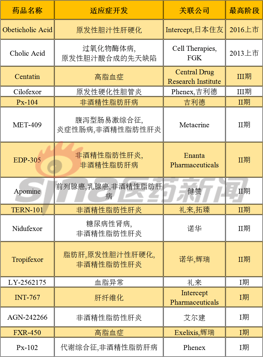 FXR药物管线