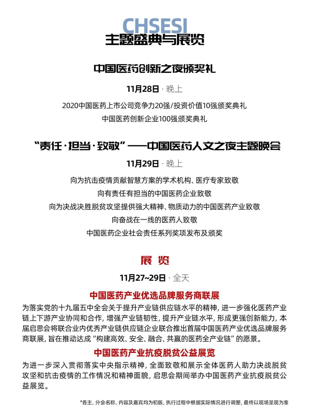 因此,由中国医药企业管理协会、中国医药生物技术协会、中国农工民主党中央委员会办公厅主办,E药经理人、中国医疗健康产业投资50人论坛承办的2020’中国医药企业家科学家投资家大会(CHSESI,简称“启思会”)的主题定为“创新重构产业”,将于2020年11月27日~29日在杭州国际博览中心举行。