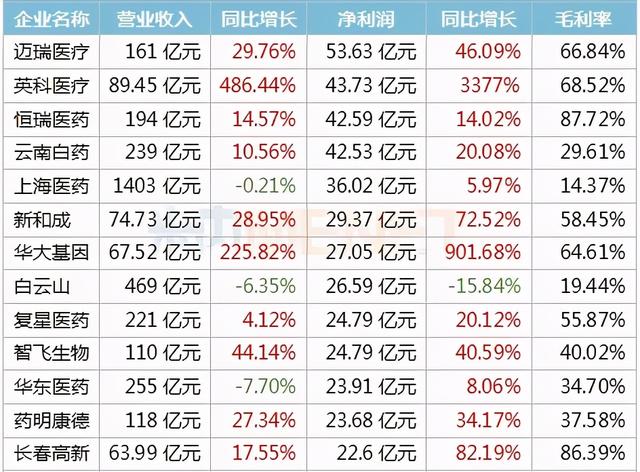 净利润TOP10:迈瑞、恒瑞4家超40亿,这家暴增超30倍