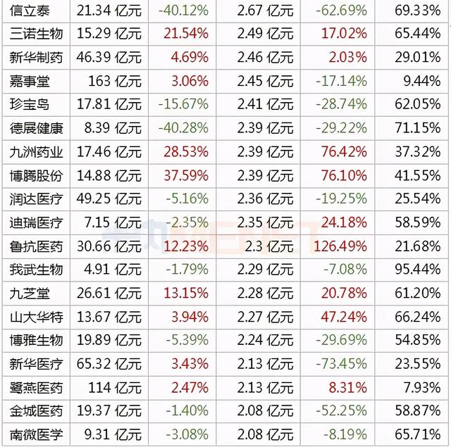 2020年前三季度医药企业净利润TOP10(单位:亿元)