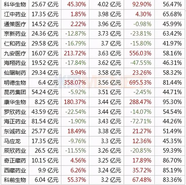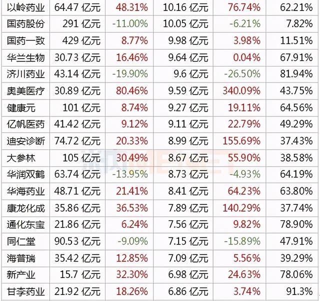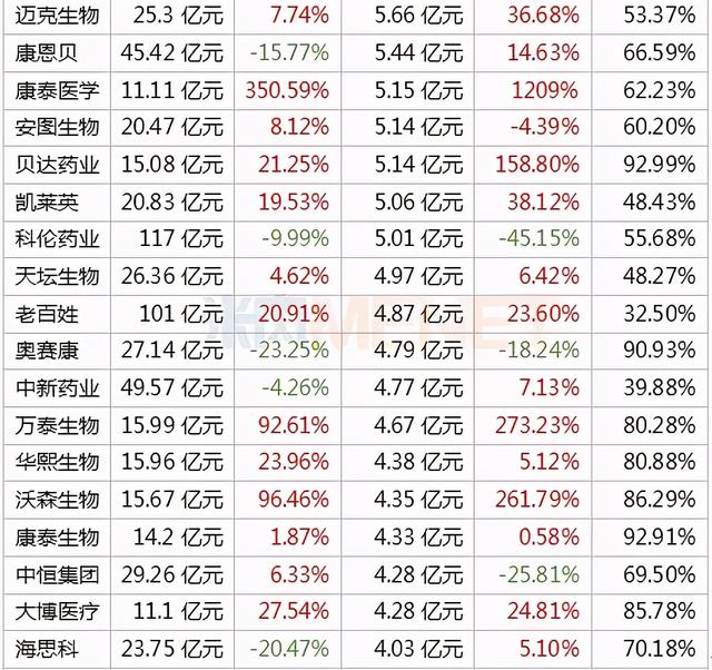 净利润TOP10药企中,迈瑞医疗、恒瑞医药、云南白药等4家净利润超40亿元。其中,迈瑞医疗以53.63亿元位居首位,英科医疗暴增超30倍。