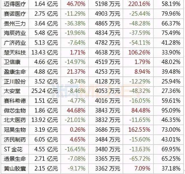 毛利率TOP10药企中,3家来自科创板;泽璟制药、我武生物、康华生物等4家毛利率均超过95%,贝达药业、康辰药业等紧跟其后。