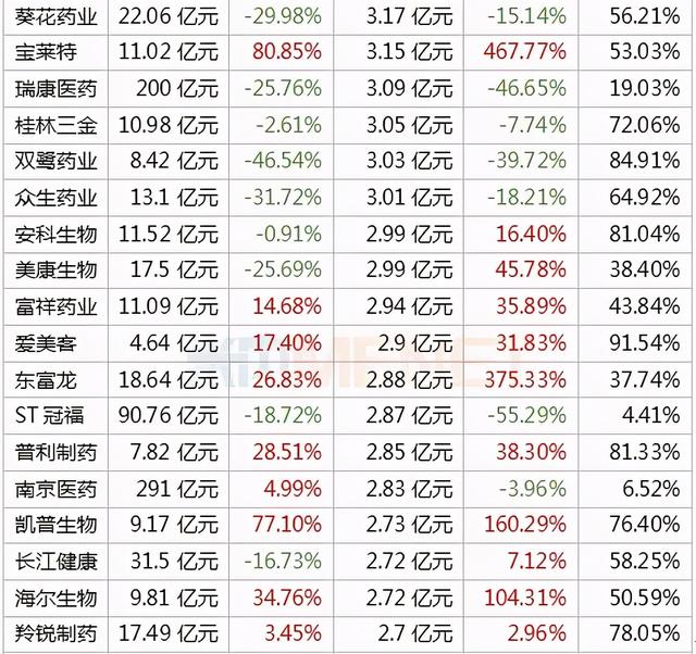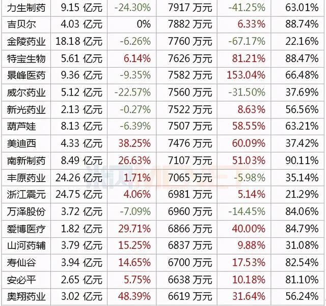 日前,A股企业三季报业绩已全部披露完毕。据统计,344家医药企业中,迈瑞医疗、恒瑞医药、云南白药等4家净利润超40亿元;泽璟制药、贝达药业、甘李药业、奥赛康、康弘药业、南新制药等16家毛利率超90%;营收方面,上海医药以1403亿元一枝独秀,九州通、白云山、中国医药等5家超过300亿元。值得一提的是,今年受新冠肺炎疫情影响,一季度超过50%的药企业绩(营收、净利润)双跌,超过50家净利润亏损;二季度随着国内疫情防控常态化,生产、经济有序恢复,上半年下滑至42%;截至前三季度,业绩双跌的药企缩减至33%;40家药企净利润亏损,而去年同期仅有20家。