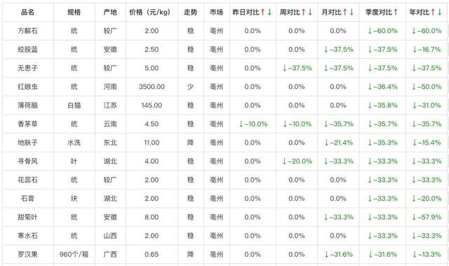 据药通网最新数据显示,今年以来,有不少中药材的价格下降是比较明显的。有的是年初就大幅降价,一直在徘徊没涨回来,有的是价格在持续下滑。