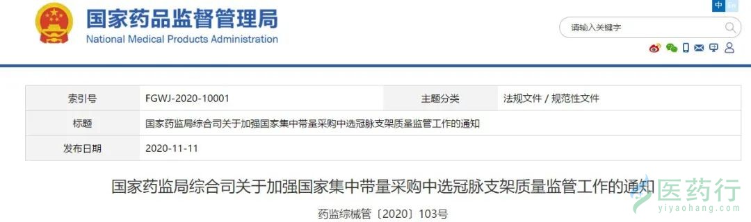 11月11日,国家药监局发布通知,要求加强国采中选冠脉支架质量监管。根据通知,在强化企业主体责任的同时,药监部门将加强现场检查力度、质量抽查等工作。 一旦药监部门在检查中发现问题,中选企业将面临失去中选资格等处罚。 对于委托生产企业来说风险更大。新基/百济神州的紫杉醇白蛋白就曾因此错失市场利好。 按照国家药监局计划, 最近一次对中选冠脉支架的现场监督检查将在2020年底前完成。