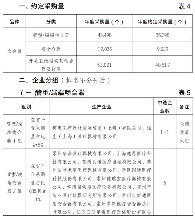 11月19日,江苏省医保局发布《江苏省第四轮公立医疗机构医用耗材联盟带量采购公告(二)》显示,将对干式胶片(激光、热敏)、吻合器(管型/端端吻合器、痔吻合器、开放直线型切割吻合器及钉匣)进行带量采购。