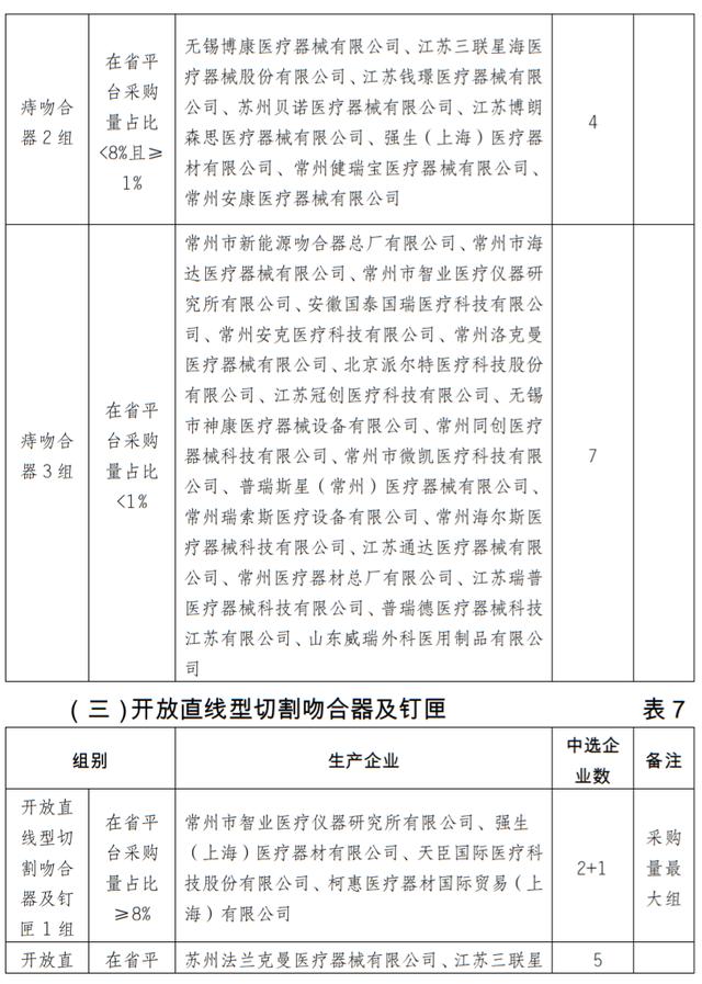 如今年8月,重庆市、贵州省、云南省、河南省医用耗材联合带量采购拟中选结果公布,其中吻合器18个分组,31个产品确定为拟中选产品,平均降幅达73.13%,最高降幅为97.76%。