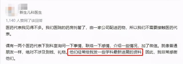 虽然拜访的时候医生都很忙,代表们总是匆匆而来匆匆而去。但是也有医生表示,有代表能随时分享一些学科最新进展的资料,是非常窝心的。