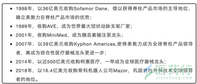 对美敦力而言,外延式并购是其稳坐全球医械市场龙头宝座的关键因素。