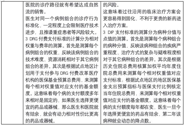 历史数据可以给医保局一个平均药物和器械耗材在整个疾病费用的比例占比,如果医保局拿这个均值作为标杆,就会逼使医院采取价格更便宜的药品/器械作为替代。仿制药和器械的国产替代在短期内依然有市场,但是一旦进入集中采购的目录,则利润会大幅度下降。