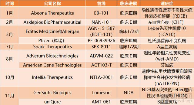 而反观国外,欧美基因治疗公司临床进展较快,仅在今年就有10家公司陆续发布了旗下基因治疗管线的最新进展。