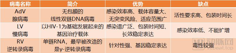 除了AAV病毒,在临床上还在应用的病毒载体包括有腺病毒(AdV)、慢病毒(LV)以及逆转录病毒(RV)。