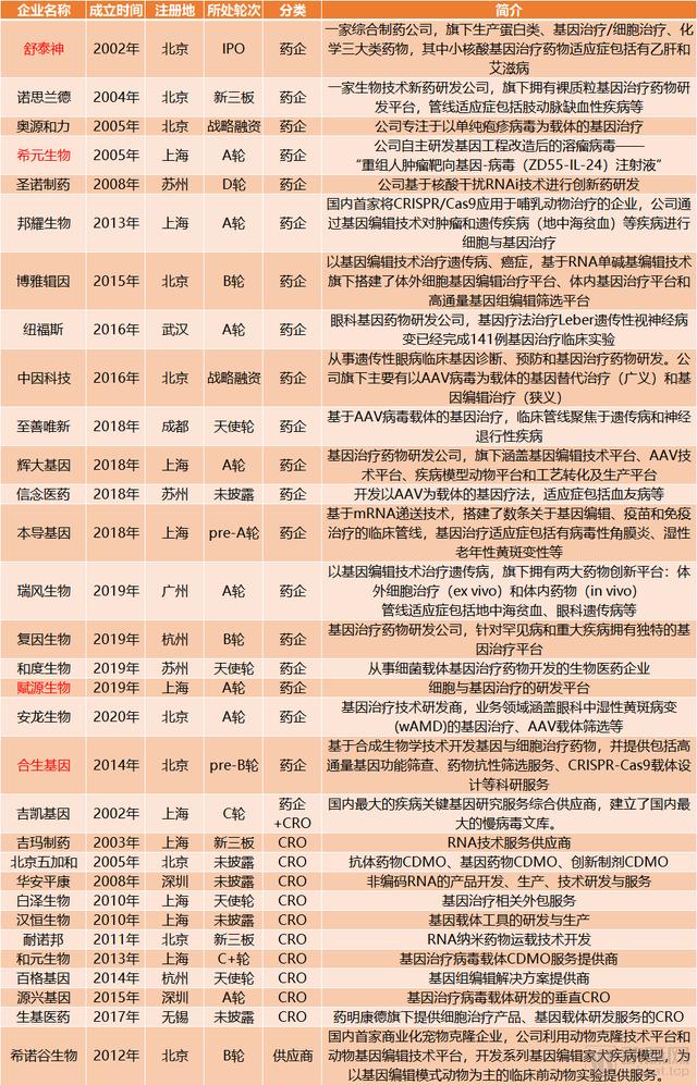 动脉网简单盘点了国内目前涉及到基因治疗相关业务的企业,并对其进行了简单的归类和分析。(注:红色字体公司是否为基因治疗企业存在争议)