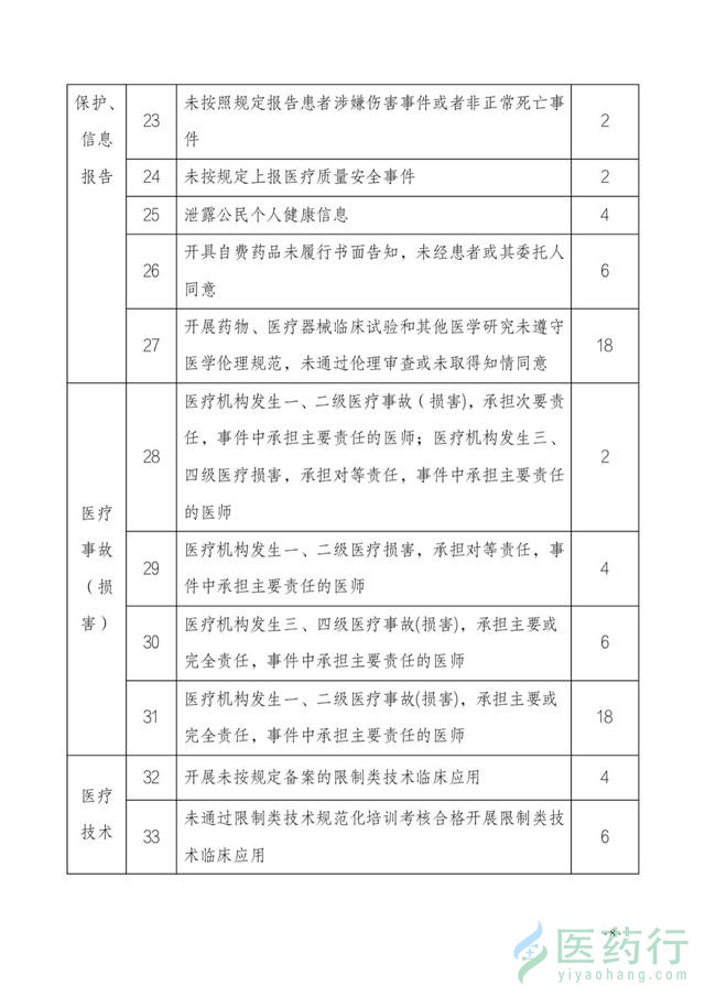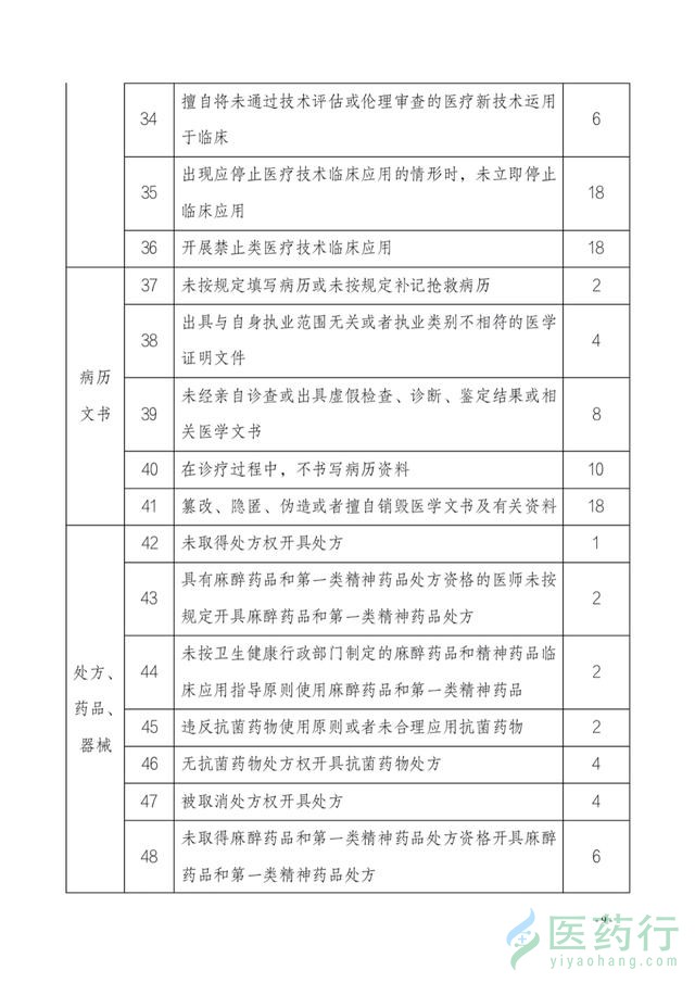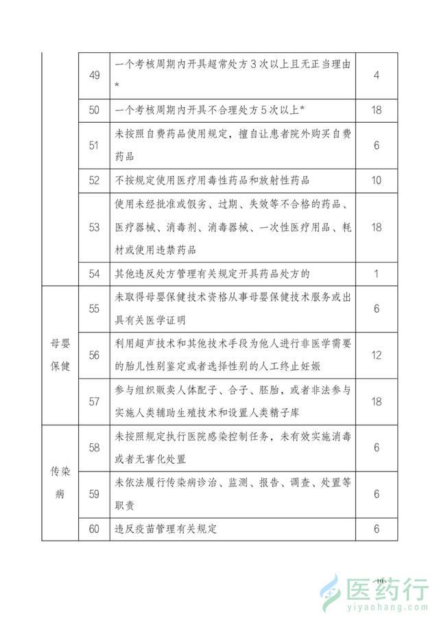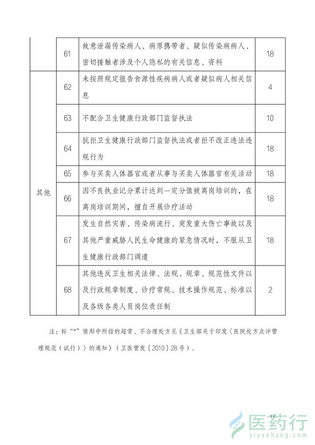 值得注意的是,医生出现不同的行为,对应不同的分值,记分在1-18分不等,其中18分为最重的记分,同时被记18分的行为还有:一个考核周期内开具不合理处方5次以上;参与买卖人体器官或者从事与买卖人体器官有关活动等。