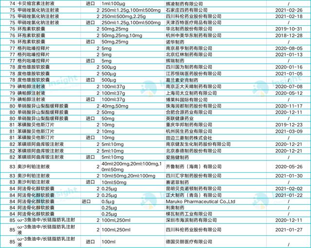 从企业来看,Insight数据库统计显示,共有12家企业符合第五批集采品种数超过5个,中国生物制药、齐鲁制药、四川科伦药业、扬子江药业分别有16、14、11、10个品种符合第五批集采条件。在跨国药企中,辉瑞制药共有9个品种,阿斯利康共有7个品种符合集采条件。