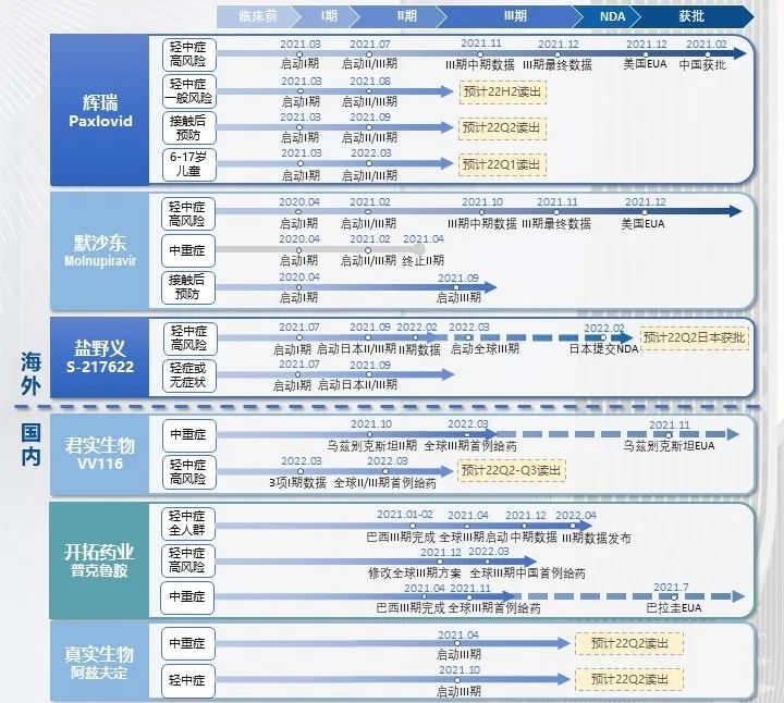 全球新冠疫情持续反复3年,疫情防控需要使用疫苗、小分子药物、中和抗体三管齐下,分别从预防、轻症治疗、重症治疗三个层面防治结合。对比现今新冠治疗药物的两大拳头,从作用机制上看,新冠中和抗体对不断突变的新冠病毒具有更高的免疫逃逸性,而小分子药物靶点不易受突变影响,难受病毒变异株的影响。从便利性优势看,大部分小分子药物可做成口服剂型,相对于需要输液的中和抗体,不会对医疗资源造成额外负担。从生产角度看,小分子药物的生产成本、药物价格、以及产能提升方面也具有相对优势。因此,我们依然看好口服小分子药物的市场前景。