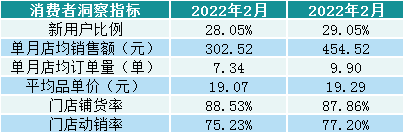 单月店均销售额从2月的302.52元快速增长到3月的454.82元,单月店均订单量由2月的7.34单增加到9.9单,平均品单价上浮了0.22元,带动门店品牌毛利率由2月的22.33%上升到23.49%。