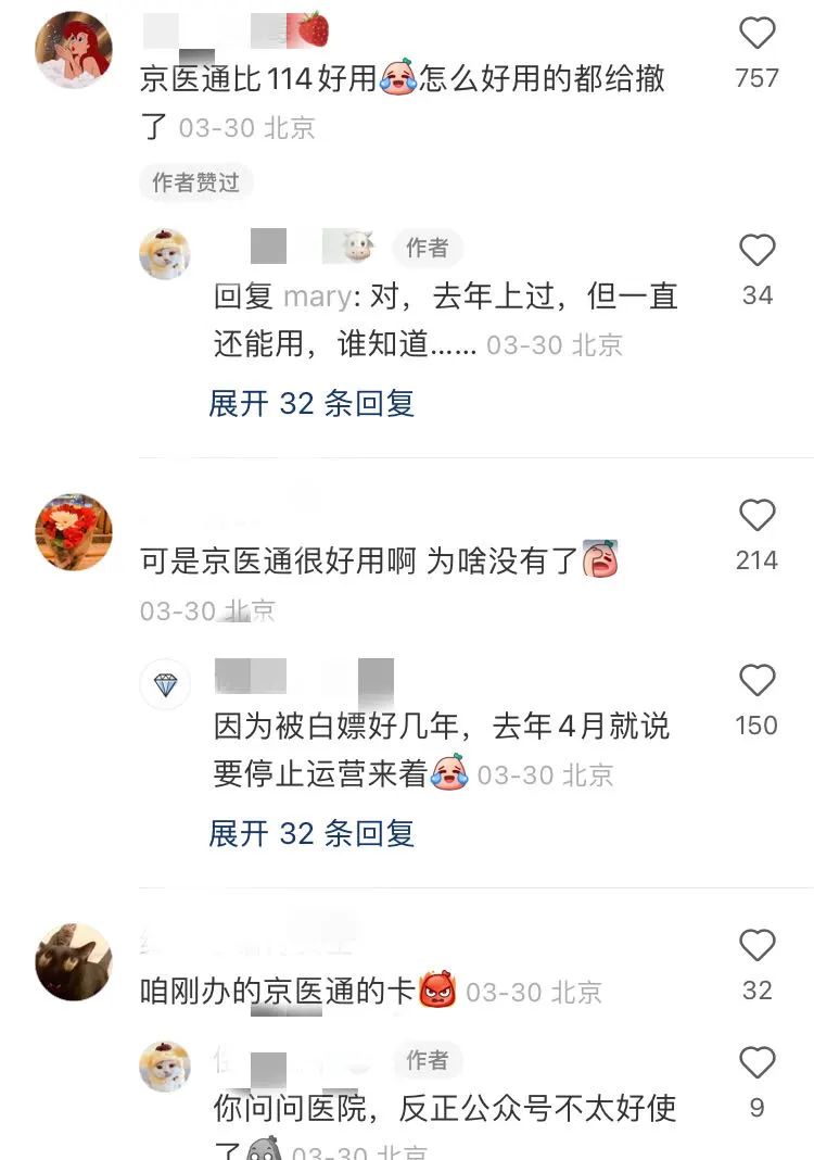 在很多老百姓眼里,京医通不能停。他们认为:以前京医通就全搞定了,想挂哪个科室,各大医院的相关科室都会推荐,现在医院各自为战开发小程序和App,年轻人都觉得麻烦,老年人更搞不明白。一些帖子的评论区里,还有不少人向12345投诉。