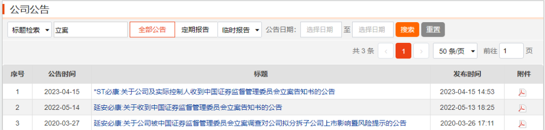 2020年3月,延安必康准备筹划分拆子公司江苏九九久到创业板上市,但随即被深交所下发关注函,要求说明是否存在重复上市、忽悠式分拆上市等情形。这是延安必康首次遭证监会立案调查。