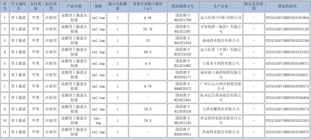 健识局从多个省份的挂网药品价格平台查询得知,去甲肾上腺素注射液和盐酸肾上腺素注射液的价格都不高.其中,单支装1ml:1mg规格的肾上腺素注射液,价格在4.5元左右;单支装1ml:2mg规格的去甲肾上腺素,价格在25元左右。