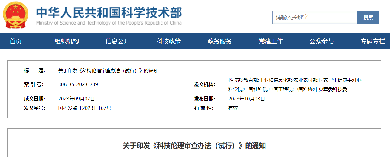 《科技伦理审查办法(试行)》已经中央科技委员会同意,现印发给你们,请遵照实施。