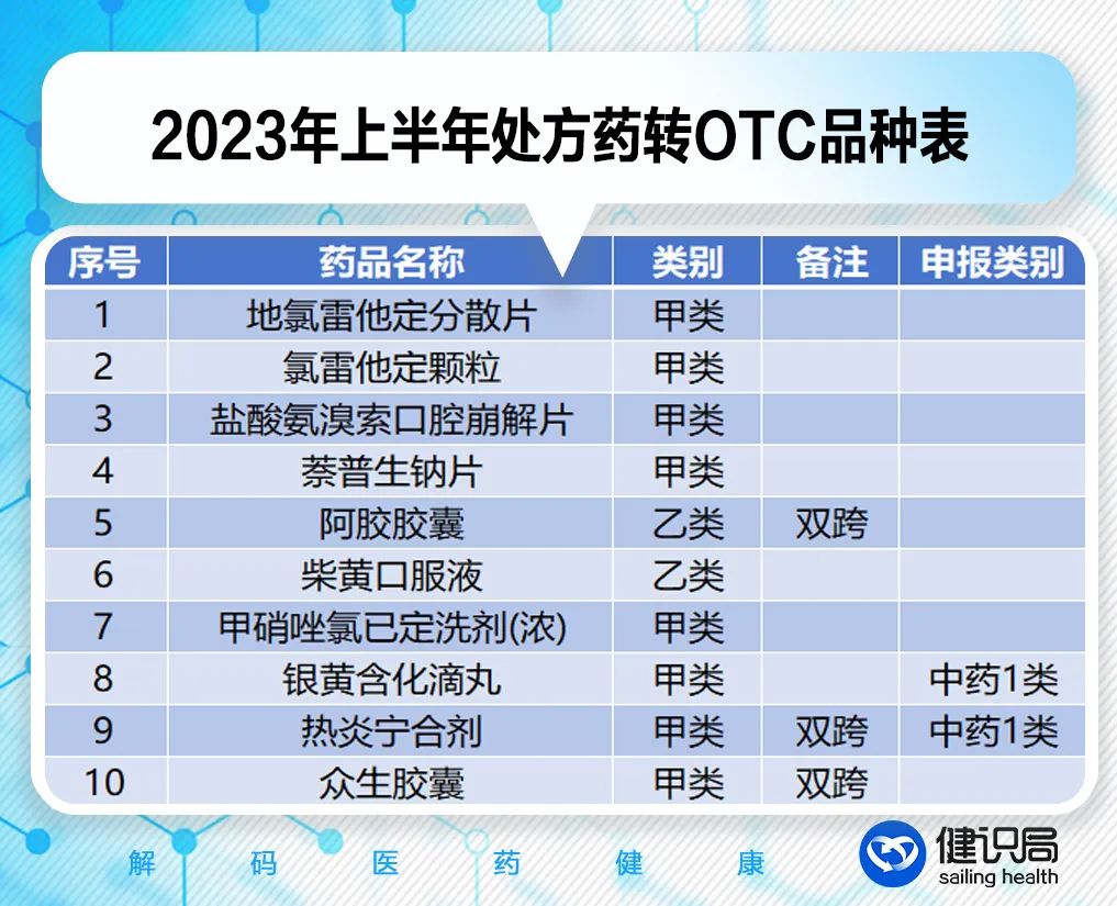 监管部门一直在配合药企转型的动作。有机构统计,仅2023年上半年就有10个处方药品种转为OTC,而2021年全年只有13个品种转OTC的。
