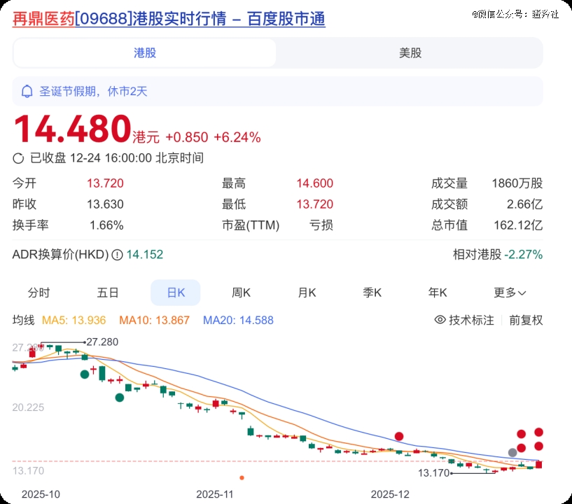 再鼎医药反转了?伴随着前天公告抗精神分裂明星管线KarXT的获批,昨天再鼎医药港股大涨6%。使得我们从K线图上看,再鼎医药终于放量反转了。