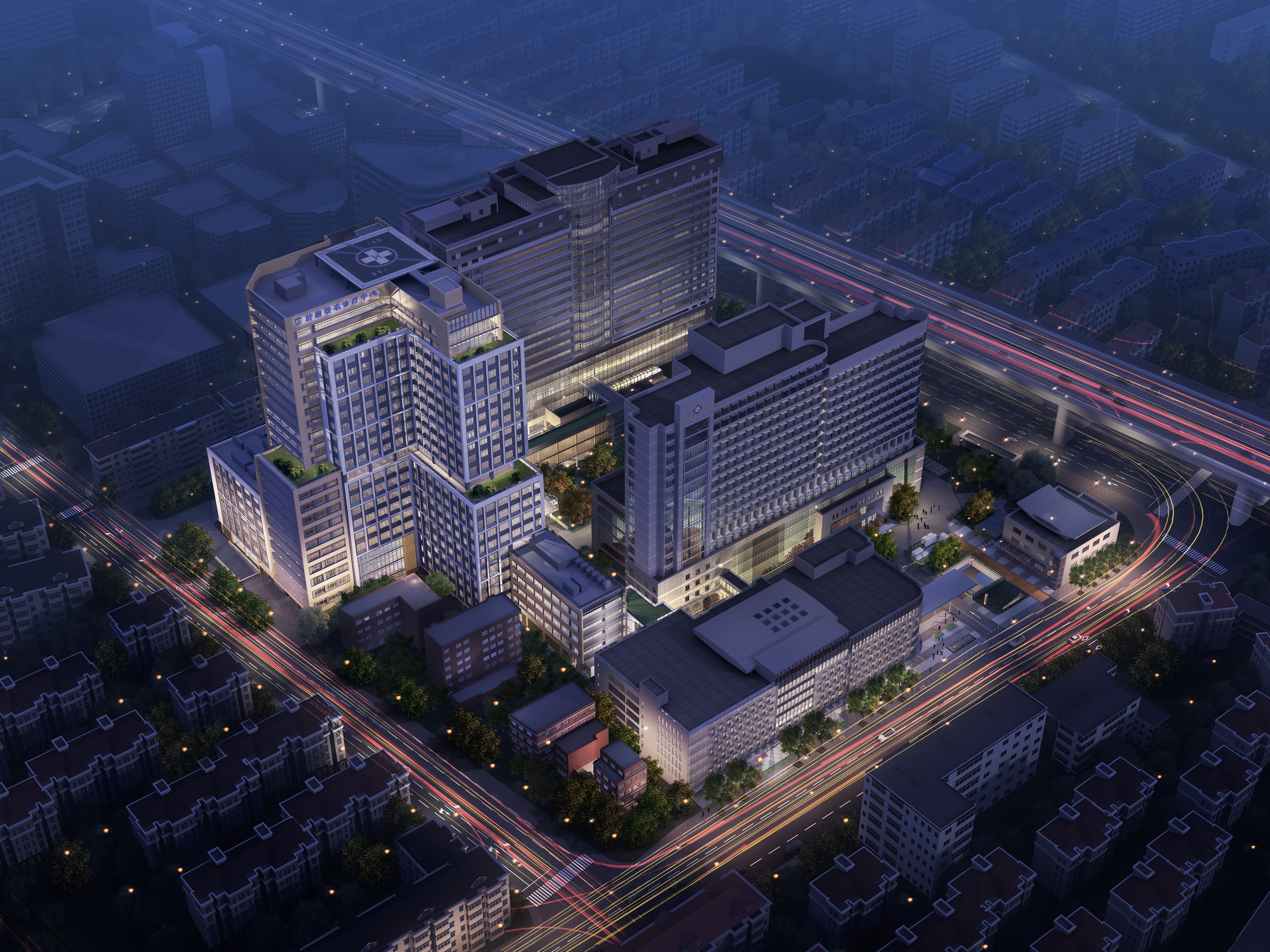 正在建设的肿瘤精准诊疗中心大楼(夜景效果图)